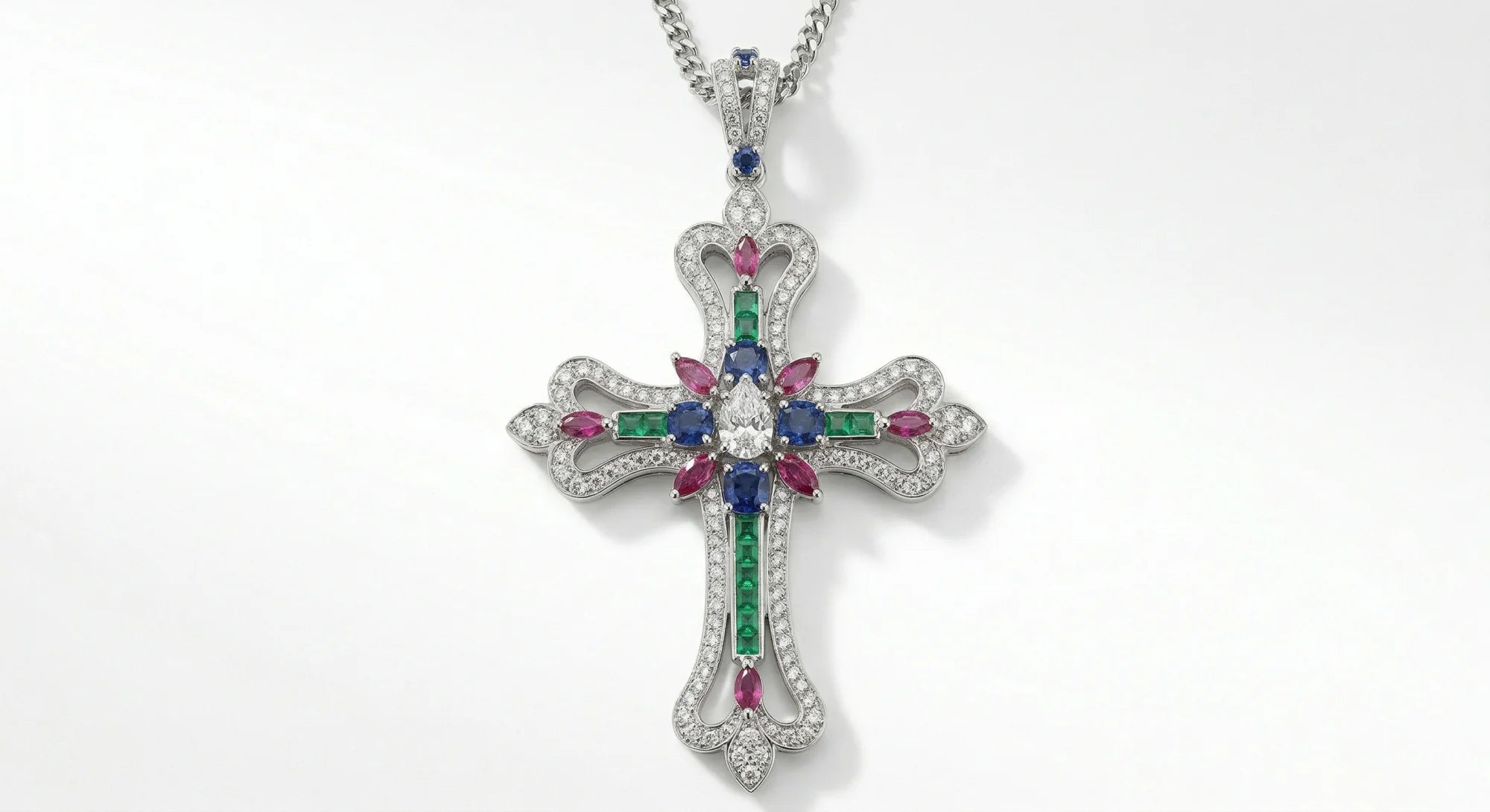 Chaîne, pendentif, sertissage : chaque élément est réalisé à la main dans notre atelier. Nous utilisons de l'or 9, 14 ou 18 carats ou du platine, et nos pierres sont de grade AAA (G/H VVS pour les diamants).